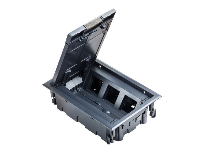 Комплектовать LUK/6 модулями можно на свое усмотрение. К тому же удобная система монтажа до щелчка позволяет при необходимости быстро изменять состав коробки или заменять вышедшие из строя модули без сложных манипуляций с сетью — это удобнее, чем типовые встраиваемые в стены розетки. А за счет крышки короба сокеты в полу не будут мешать поддерживать порядок в помещении.