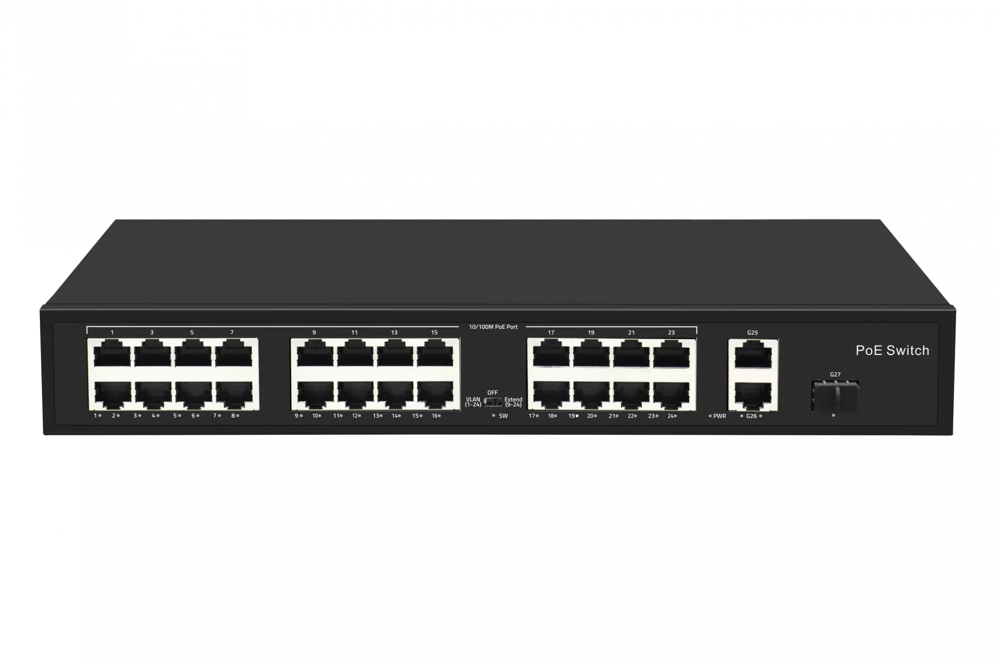 Коммутатор GIGALINK, неуправляемый, 24 PoE (802.3af/at) портов 10/100Мбит/с до 250метров, 2*1000Mбит/c RJ45 + 1*SFP, 300Вт
