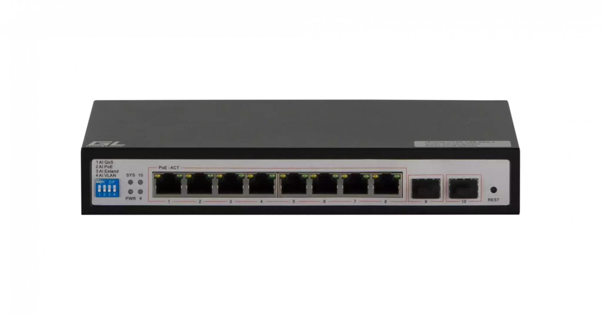 Коммутатор GIGALINK, WEB Smart управляемый, 8 PoE (802.3af/at) портов 10/100/1000Мбит/с до 250 метров cat.6, 2*SFP 1000Мбит/с, 120Вт APO&R
