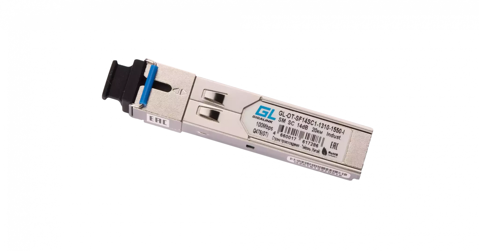 Модуль промышленный SFP, WDM, 100/155 Мбит/c, одно волокно SM, SC, Tx:1310/Rx:1550 нм, DDM, 14 дБ (до 20 км)
