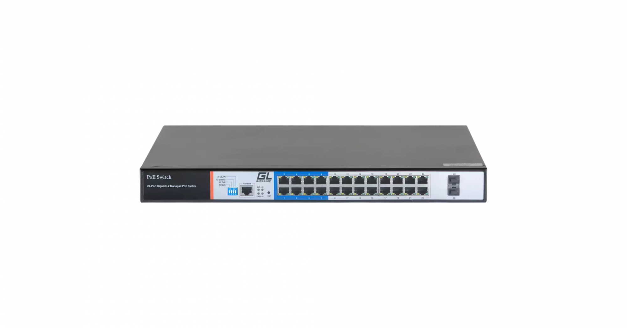 Коммутатор GIGALINK, WEB Smart управляемый, 24 PoE (802.3af/at) портов 10/100/1000Мбит/с 8 до 250 метров cat.6, 2*SFP 1000Мбит/с, 400Вт APO&R