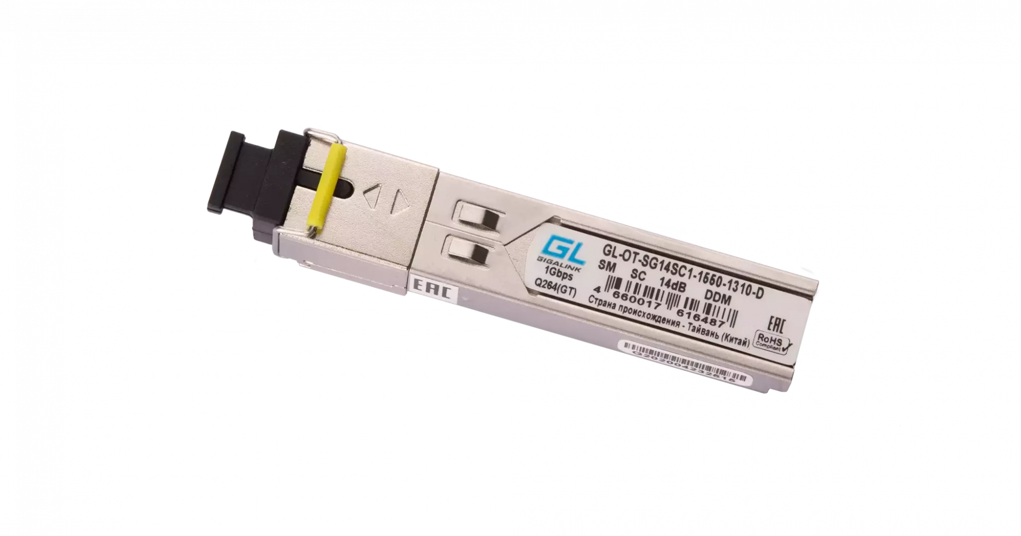 Модуль GIGALINK SFP, WDM, 1,25Гбит/c, одно волокно SM, SC, Tx:1550/Rx:1310 нм, DDM, 14 дБ (до 20 км)