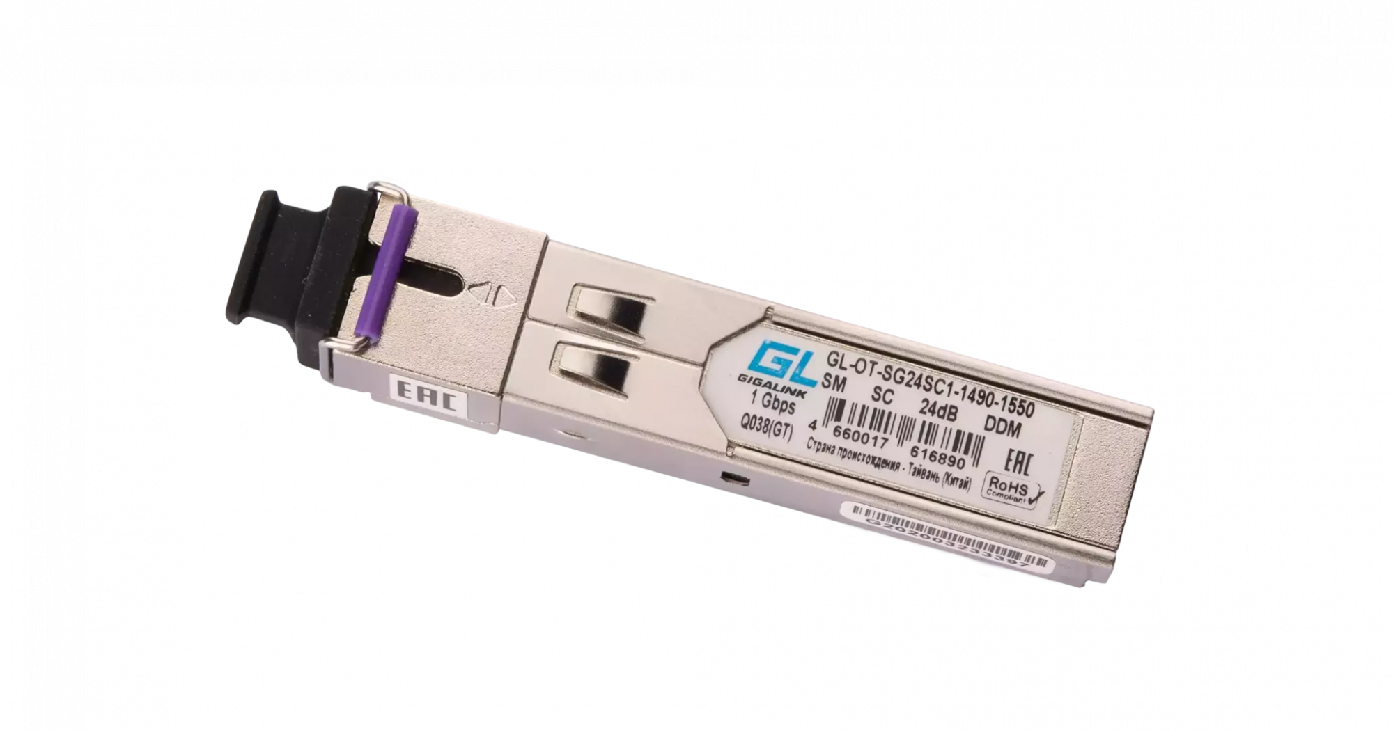Модуль GIGALINK SFP, WDM, 1,25Гбит/c, одно волокно SM, SC, Tx:1490/Rx:1550 нм, DDM, 24 дБ (до 80 км)