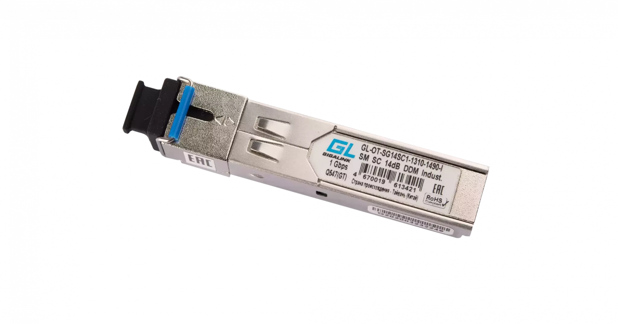 Модуль GIGALINK SFP, WDM, 1,25Гбит/c, одно волокно SM, SC, Tx:1310/Rx:1490 нм, DDM, 14 дБ (до 20 км)