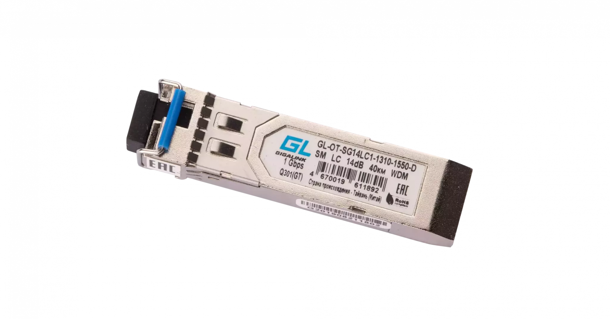 Модуль GIGALINK SFP, WDM, 1,25Гбит/c, одно волокно SM, LC, Tx:1310/Rx:1550 нм, DDM, 14 дБ (до 20 км)