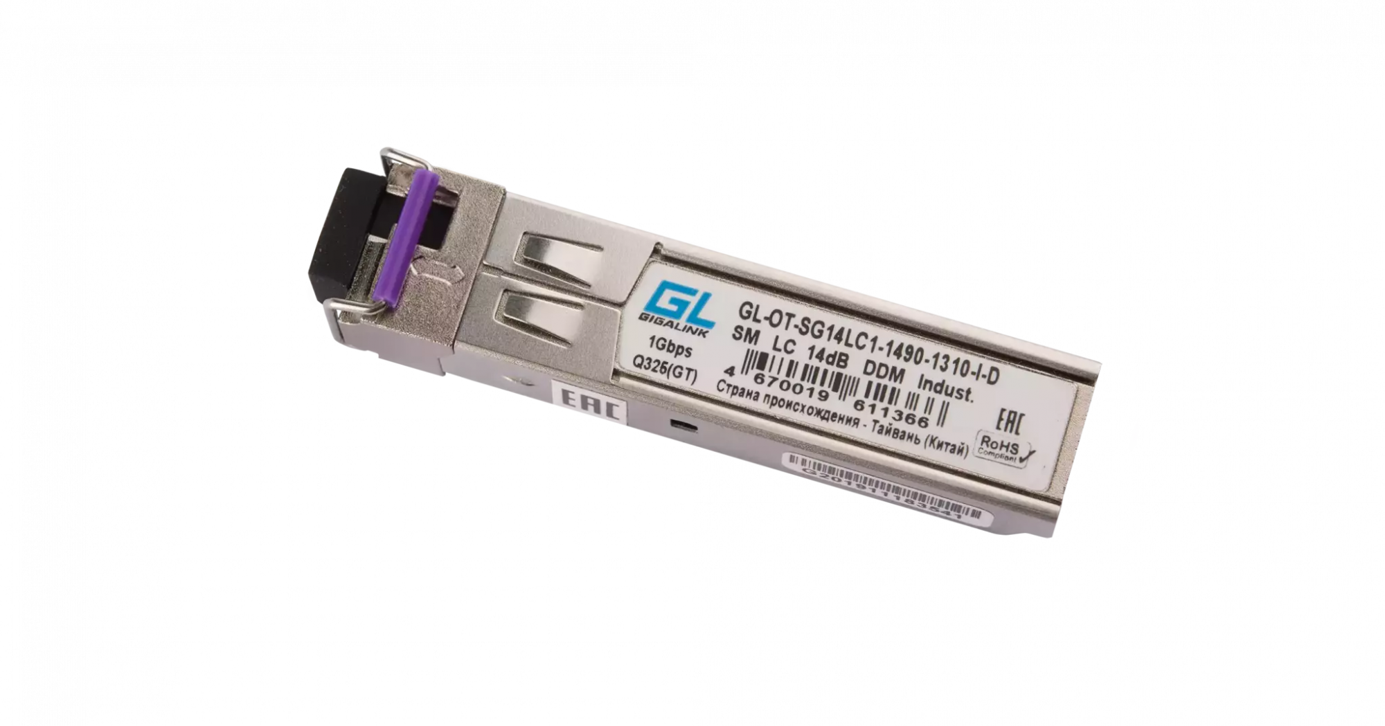 Модуль GIGALINK SFP, WDM, 1,25Гбит/c, одно волокно SM, SC, Tx:1310/Rx:1550 нм, DDM, 14 дБ (до 20 км)
