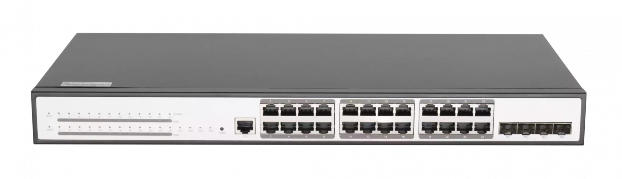 Управляемый PoE коммутатор GIGALINK, L2+ Stack, 24 10/1000/1000Мб/с PoE BASE-T, 4 порта 1/10Гб/с SFP+, 1 консольный порт, 400Вт
