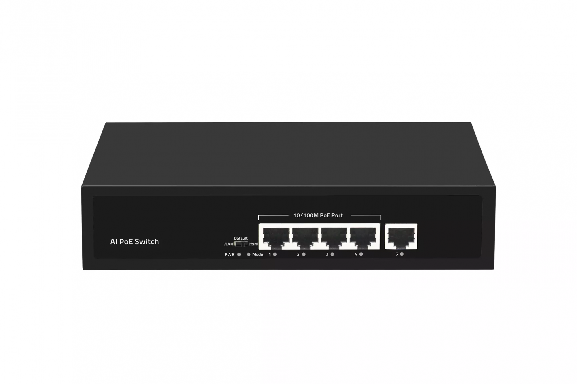 Коммутатор GIGALINK, неуправляемый, 4 PoE (802.3af/at) порта 10/100Мбит/с до 250метров, 1*1000Mбит/c RJ45, 65Вт