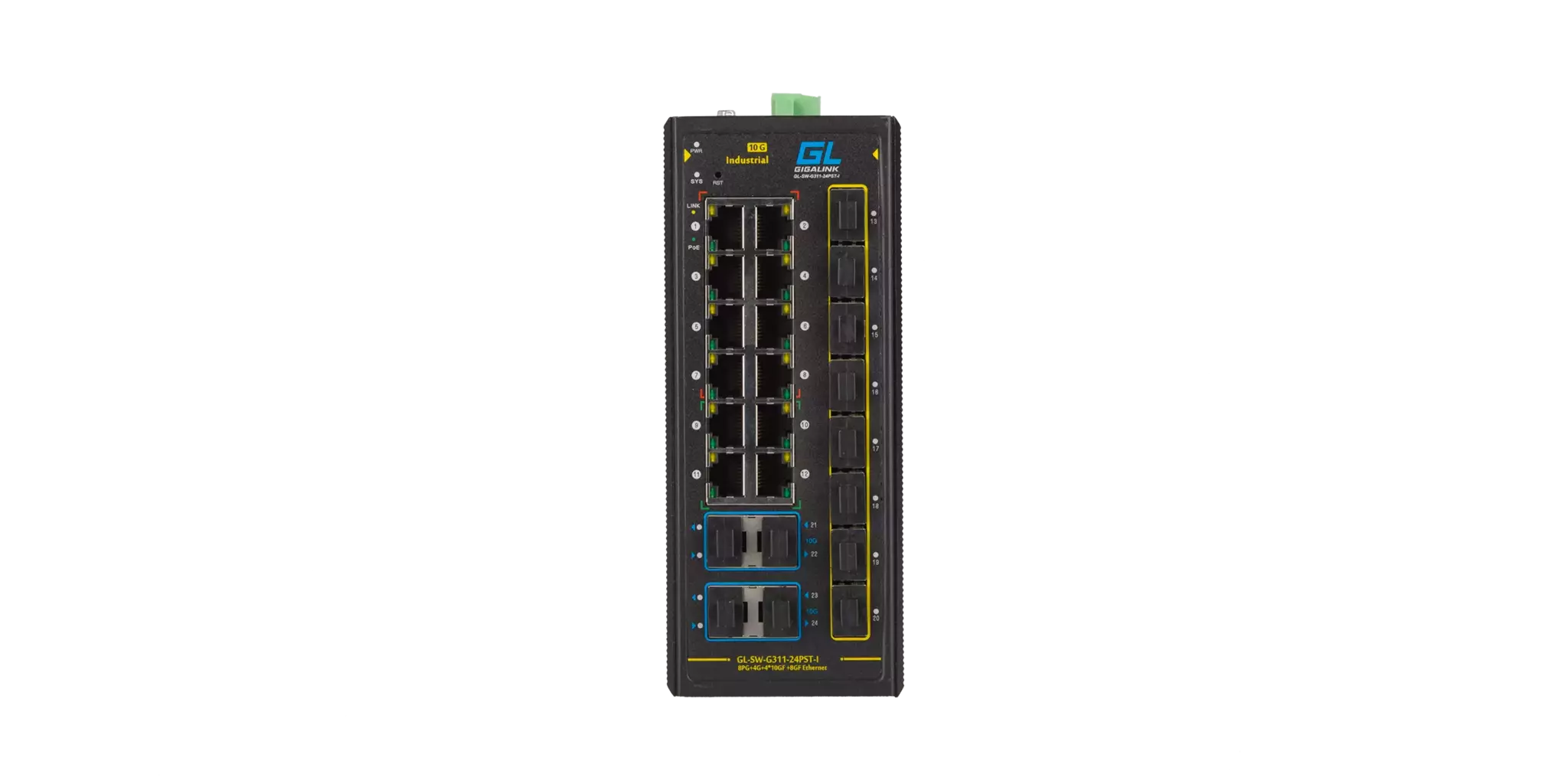 Индустриальный PoE+ Коммутатор GL-SW-G311-24PST-I, 10/100/1000Мбит/с L3 управляемый, обеспечивает надежную инфраструктуру для вашей сети. Этот коммутатор обеспечивает более интеллектуальные функции, которые необходимы для повышения доступности критически важных бизнес-приложений, защищает вашу конфиденциальную информацию, и оптимизирует пропускную способность сети для более эффективной передачи информации и приложений. Он обеспечивает идеальное сочетание доступности и возможностей для начального уровня сетей, промышленного, малого бизнеса или корпоративного сегмента, которые требуют промышленного наблюдения, IP-телефонии или беспроводных приложений, обеспечивая надежную и устойчивую работу всей сети.