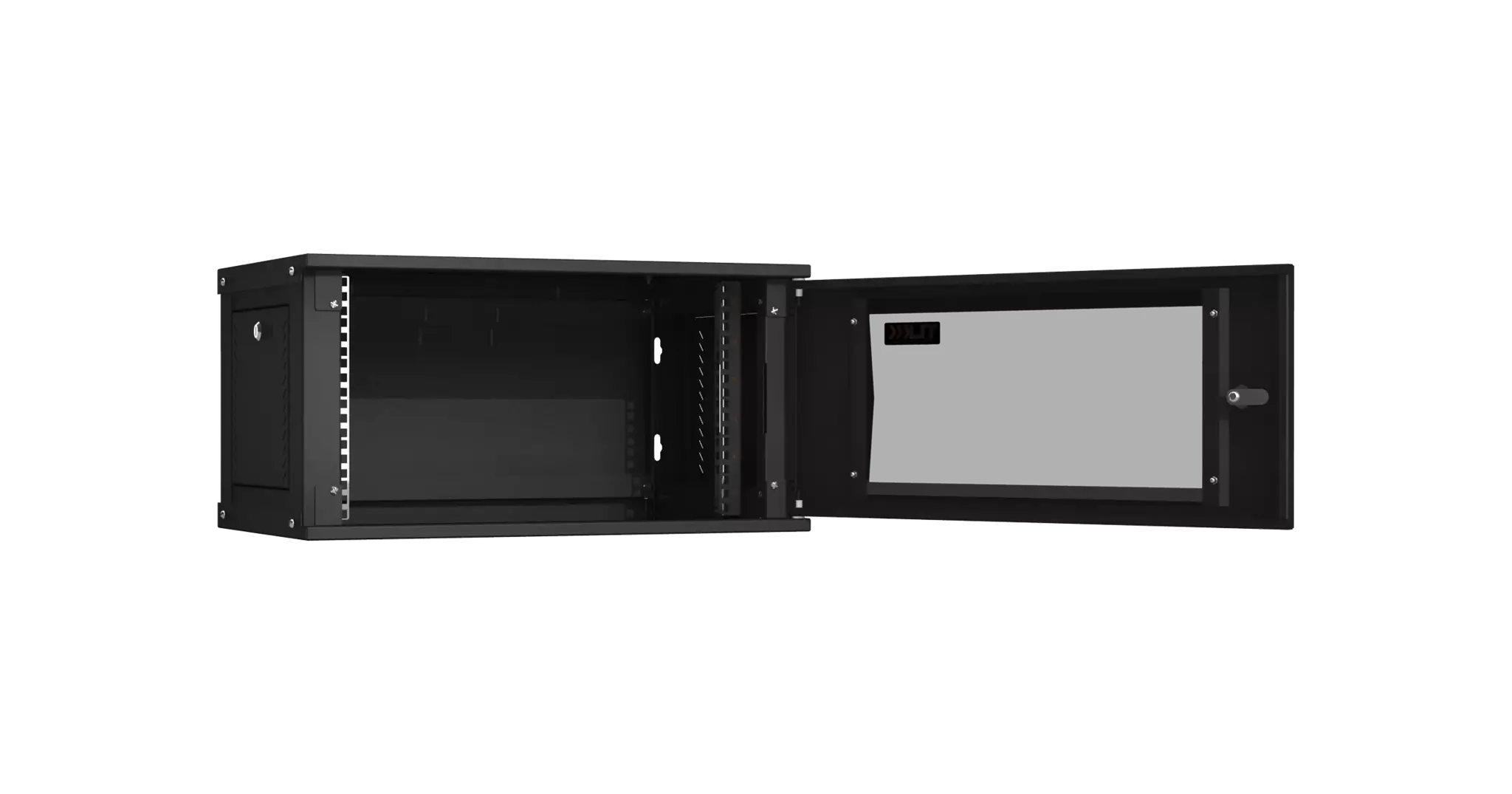 Шкаф настенный 6U, Ш600хГ350, 6U, Ш600хГ350, стеклянная дверь, цельнометаллические стенки, черный